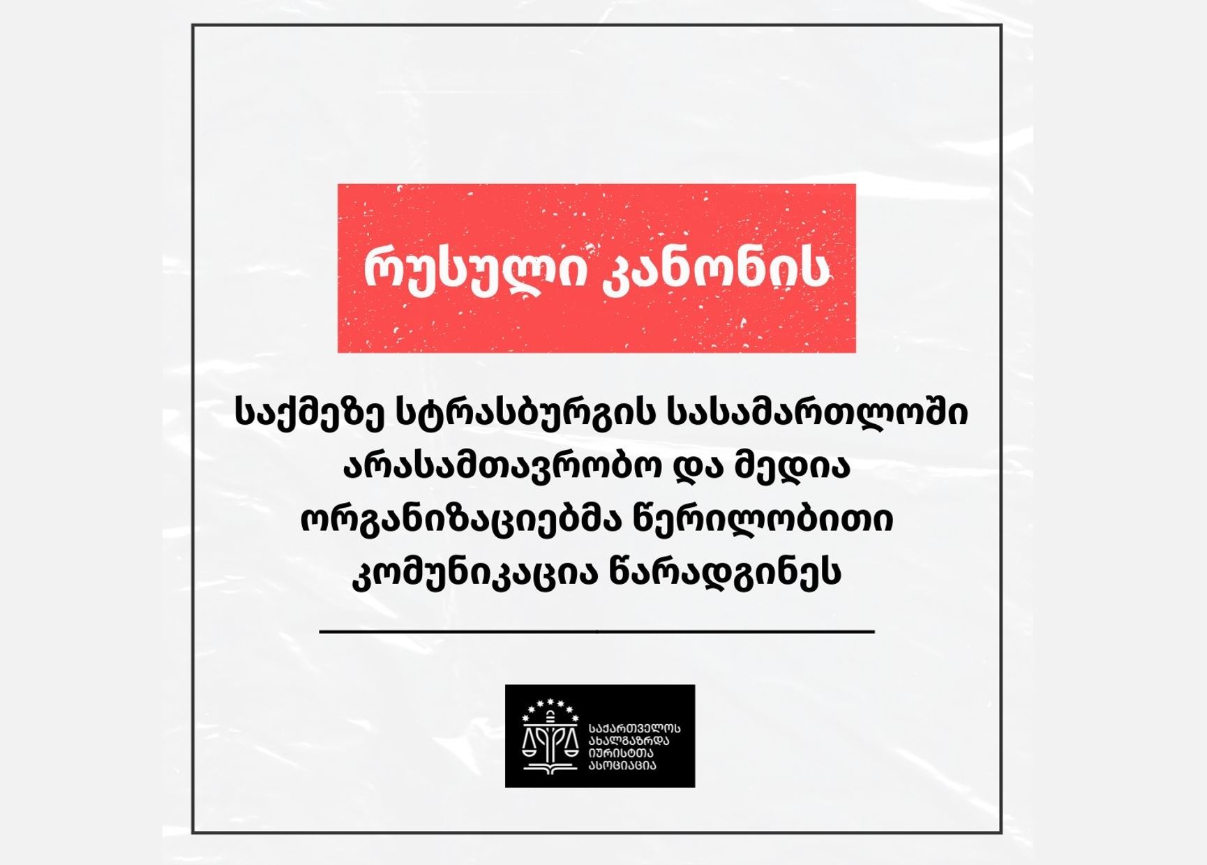 „რუსულ კანონზე” და მის მიერ გამოწვეულ მძიმე შედეგებზე საჩივრით ადამიანის უფლებათა ევროპულ სასამართლოს 16-მა მედია ორგანიზაციამ, 120-მა არასამთავრობო ორგანიზაციამ და 4-მა ფიზიკურმა პირმა 2024 წლის 17 ოქტომბერს მიმართა. სასამართლომ საქმის განხილვა უპრეცედენტოდ მოკლე ვადაში დაიწყო, რის შემდგომაც საქმის განხილვა ახალ ეტაპზე გადავიდა. სასამართლომ უკვე მიიღო სახელმწიფოს პასუხი საჩივართან დაკავშირებით. შემდეგ ეტაპზე იუსტიციის სამინისტროს კვლავ მოუწევს წერილობითი მოსაზრებების სასამართლოში წარდგენა და მომჩივნების წერილობით არგუმენტაციაზე პასუხის გაცემა.